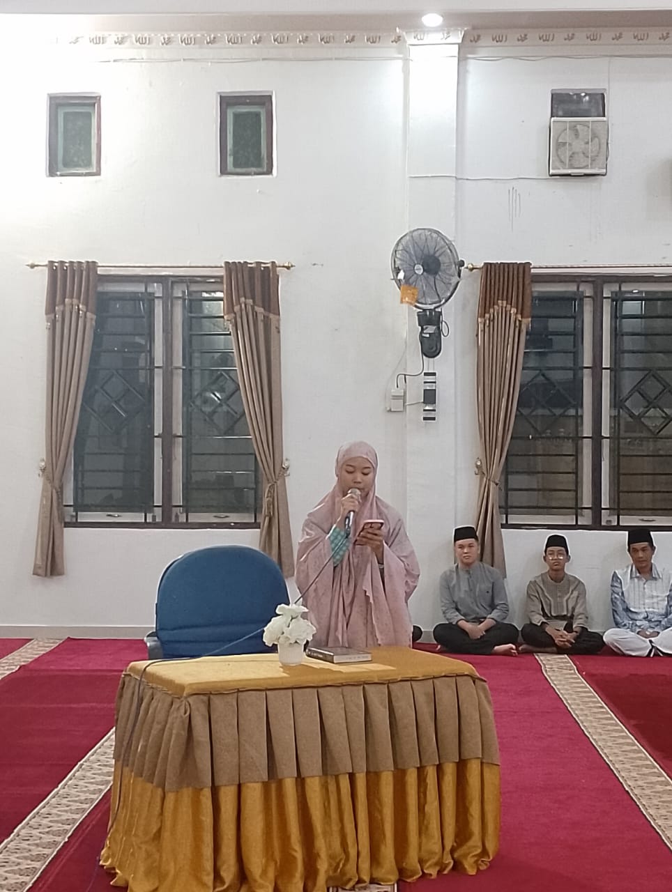 Sebagai pembawa acara, Ayudia memandu jalannya kegiatan dengan lancar dan tertib. Suasana semakin syahdu ketika Bapak Herri Suhandi, S.Pd, M.PdI memimpin shalat berjamaah sebagai imam, dan Bapak Deri Hariadi bertugas sebagai bilal.