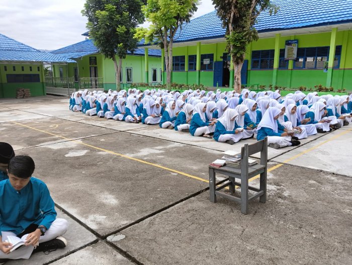 Kerinci (MAN 2 Kerinci) - Suasana khidmat menyelimuti Lapangan MAN 2 Kerinci pada Jumat pagi saat seluruh guru dan siswa mengikuti kegiatan Wirid Yasin rutin. Kegiatan ini menjadi bagian dari pembiasaan keagamaan madrasah yang bertujuan menumbuhkan semangat spiritualitas serta mempererat kebersamaan seluruh warga madrasah. (7/11)