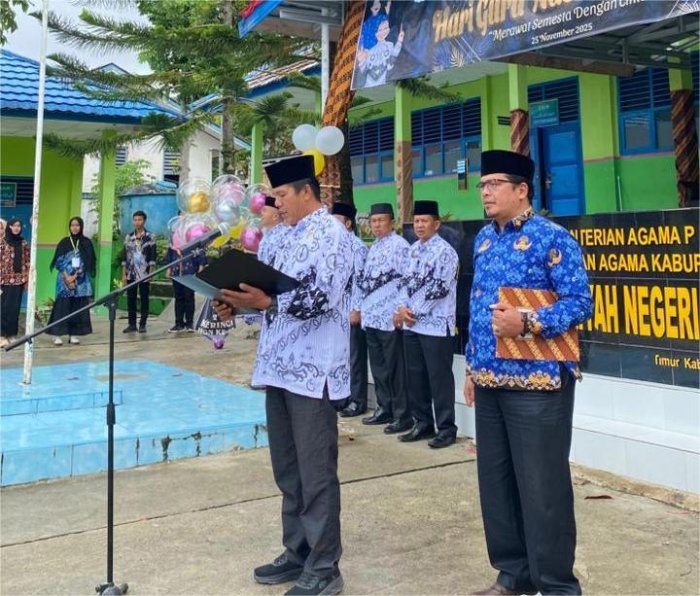 Pada hari Selasa (25/11/2025), suasana Lapangan MAN 2 Kerinci dipenuhi semangat kebersamaan dan penghormatan dalam rangka peringatan Hari Guru Nasional (HGN) 2025. Upacara bendera yang digelar sejak pagi diikuti oleh seluruh civitas madrasah, baik guru, tenaga kependidikan, maupun peserta didik. Seluruh rangkaian upacara berlangsung dengan khidmat sebagai bentuk apresiasi terhadap jasa dan pengabdian para guru dalam mencerdaskan kehidupan bangsa.