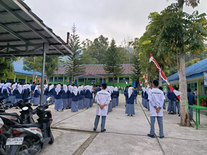 Senin, 26 Januari 2026 Pelaksanaan Upacara bendera seringkali menjadi tantangan fisik bagi sebagian siswa, terutama di bawah terik matahari. Untuk mengantisipasi hal tersebut, tim piket dari UKM MAN 2 KERINCI secara rutin bersiaga di sisi lapangan guna memastikan ketertiban dan memberikan pertolongan pertama bagi siswa yang membutuhkan.