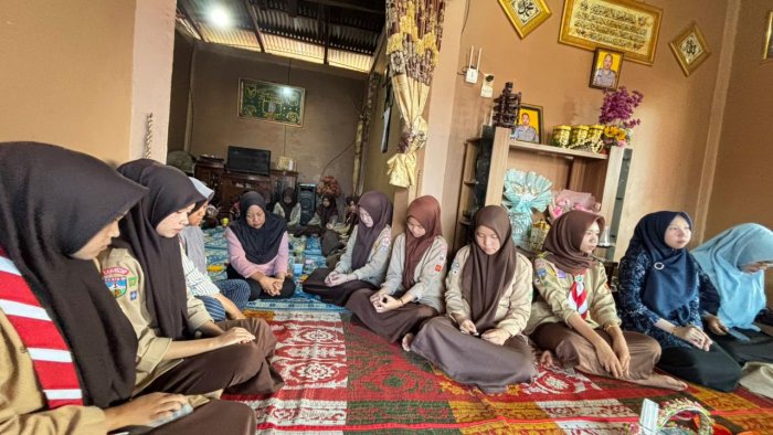Perwakilan Guru dan Tenaga Kependidikan serta Peserta didik MAN 2 Kerinci takziyah ke salah satu rumah peserta didik Sahla Apraima Pratiwi Arafik, yang orang tuanya meninggal dunia, Sabtu (11/04/26) di Desa Pendung Hilir, Kecamatan Air Hangat.
